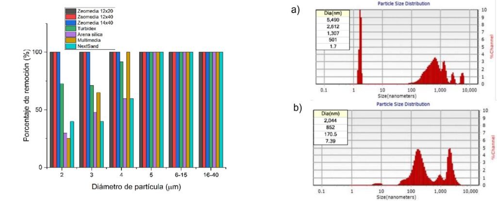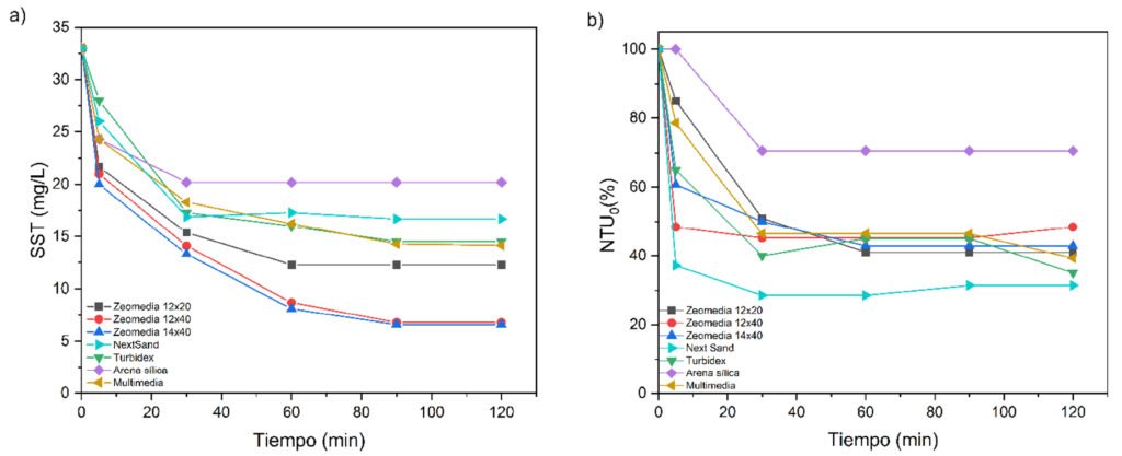 Zeomedia zeolite presented a higher efficiency compared to other zeolitic filter materials, achieving up to 80% particle removal on a laboratory scale, as well as a cut-off rate of retention of particles smaller than 5 microns compared to conventional media.
